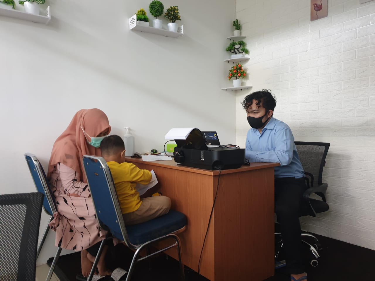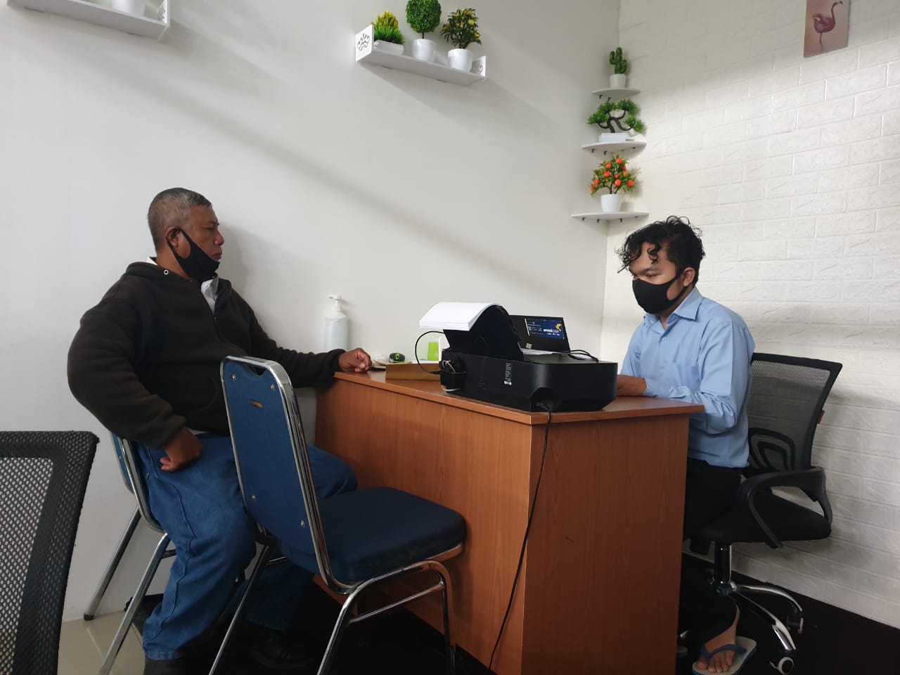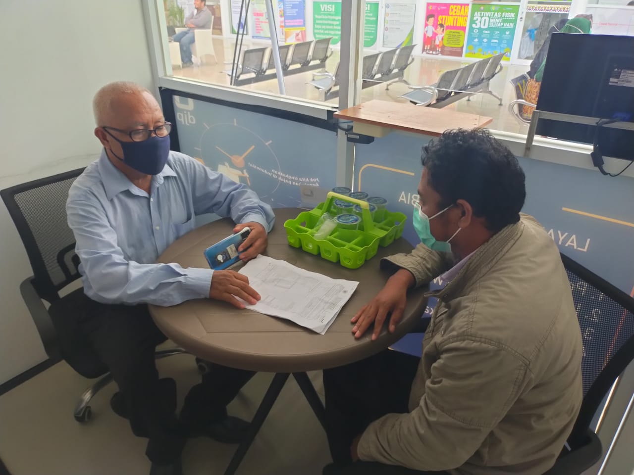 Dengan memenuhi protokol kesehatan, pengunjung yang datang ke loket layanan perpajakan wajib mengenakan masker. Selain itu, wajib pajak yang diperbolehkan masuk ke dalam loket maksimal dua orang.