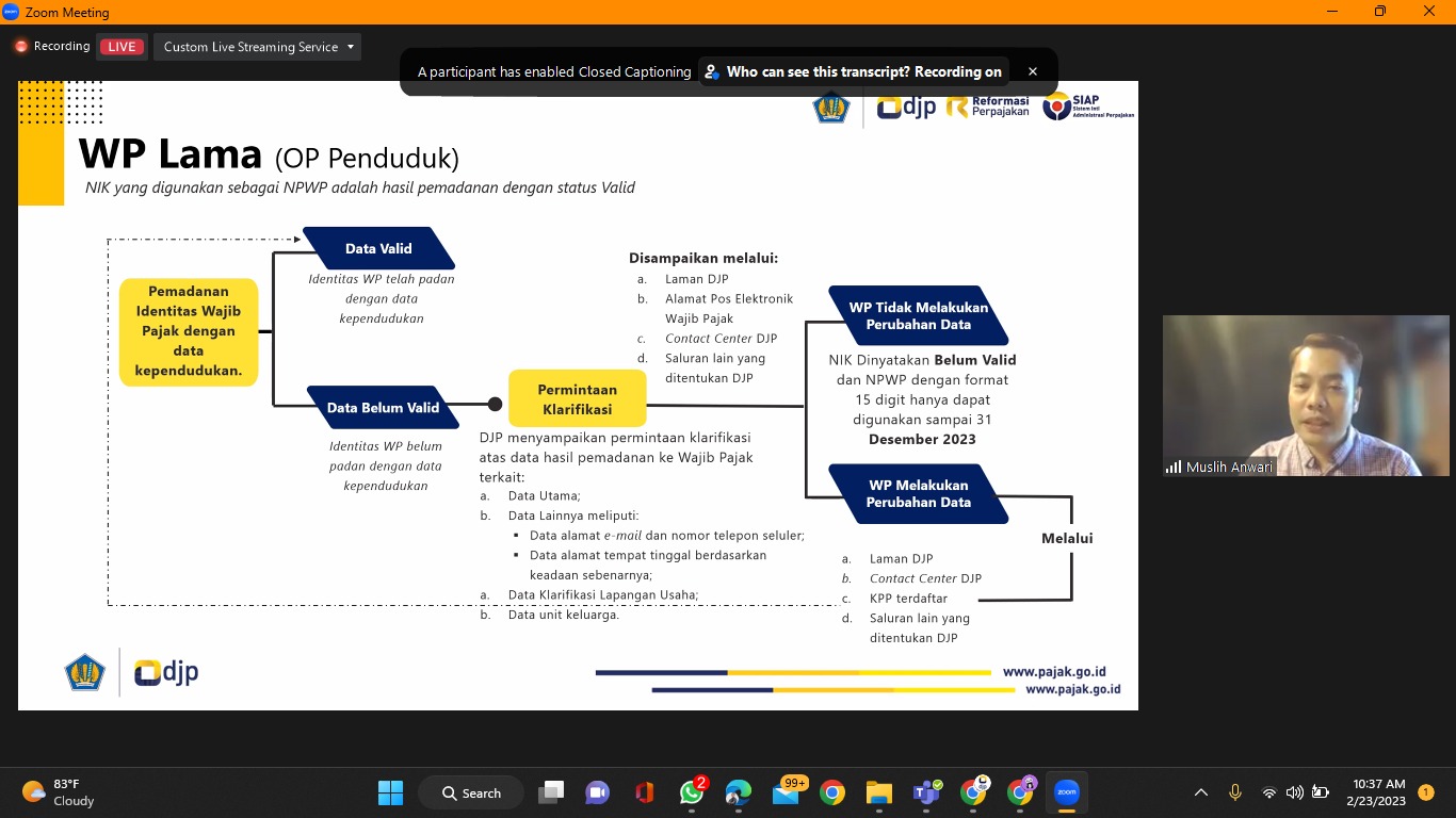 Sedangkan muslih menjelaskan tata cara pemadanan NIK menjadi NPWP. Acara ditutup dengan sesi tanya jawab dan foto bersama.