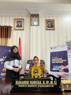 Wakil Bupati Kabupaten Pohuwato Suharsi Igrisa mengikuti Pekan Panutan yang dilakukan oleh Kantor Pelayanan, Penyuluhan, dan Konsultasi (KP2KP) Marisa dengan menyampaikan pelaporan Surat Pemberitahuan (SPT) Tahunan secara daring melalui e-filing di Ruang Wakil Bupati Kabupaten Pohuwato (Senin, 6/2). Selain menyampaikan SPT Tahunan, Suharsi juga melakukan pemadanan Nomor Induk Kependudukan (NIK) menjadi Nomor Pokok Wajib Pajak (NPWP).