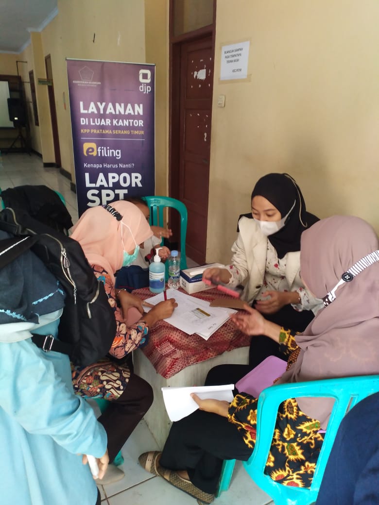Warga Kecamatan Petir Kabupaten Serang ramai mendatangi kantor kecamatan untuk memanfaatkan layanan perpajakan luar kantor terkait penyampaian SPT Tahunan yang digagas oleh Kantor Pelayanan Pajak (KPP) Pratama Serang Timur (Selasa, 9/3). KPP Pratama Serang Timur melakukan kegiatan ini untuk meningkatkan kepatuhan wajib pajak di wilayah kerjanya. Protokol kesehatan pun diterapkan secara ketat untuk menjaga keamanan peserta selama masa pandemi.