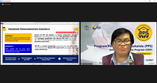 Kantor Pelayanan Pajak (KPP) Pratama Samarinda Ilir menggelar Kelas Pajak bertemakan Program Pengungkapan Sukarela (PPS) secara daring melalui aplikasi Zoom Cloud Meetings di Kota Samarinda (Rabu, 19/1).