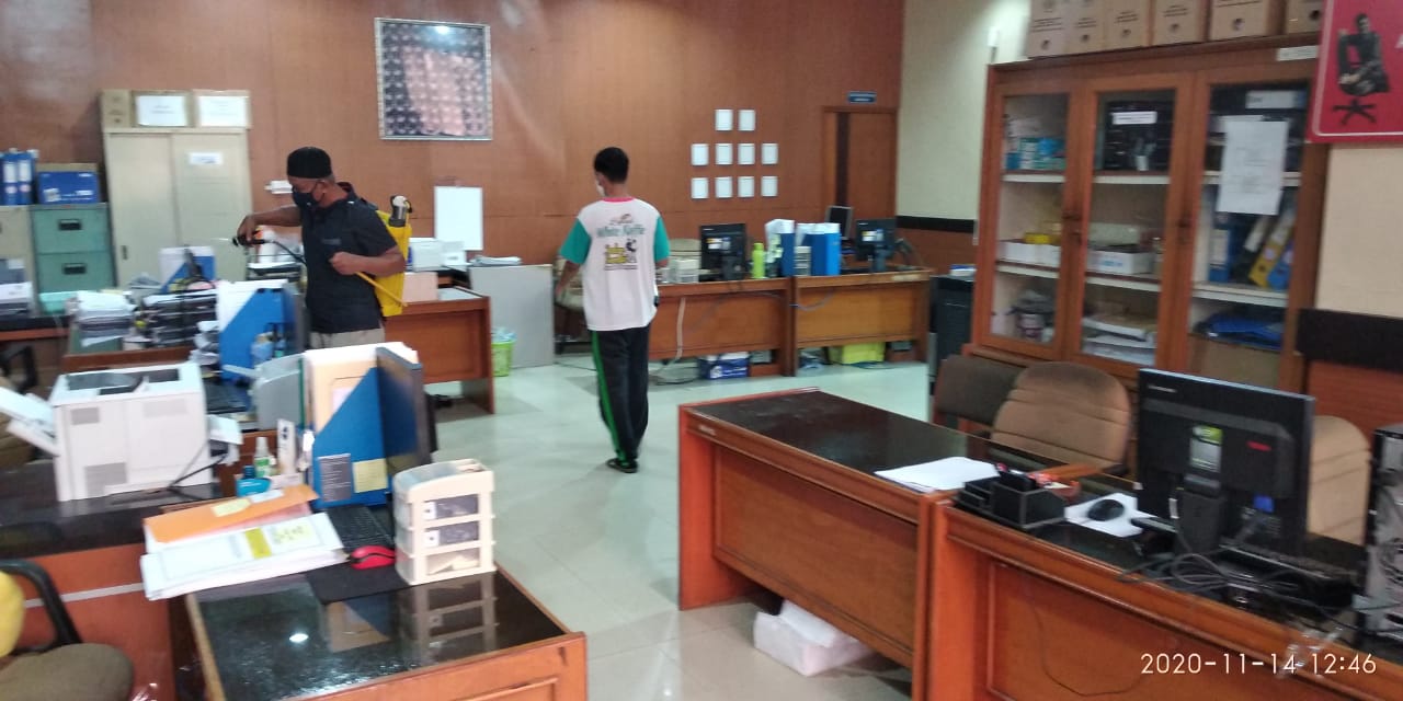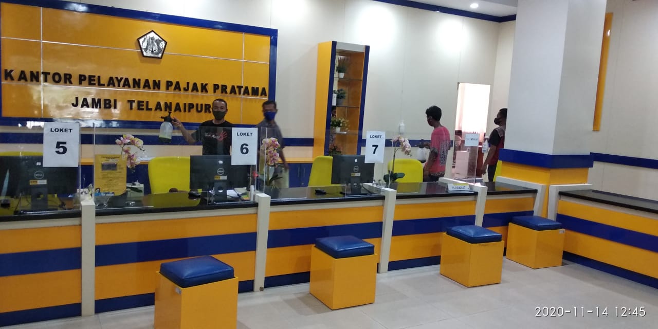 Kantor Pelayanan Pajak (KPP) Pratama Jambi Telanaipura kembali mengadakan penyemprotan disinfektan di seluruh ruangan kantor, sebagai upaya untuk mencegah penyebaran Ccovid-19 di lingkungan KPP Jambi Telanaipura (Sabtu, 14/11). Kegiatan ini dilakukan secara serentak oleh petugas kebersihan KPP Jambi Telanaipura dengan tetap mematuhi protokol kesehatan yang ada.