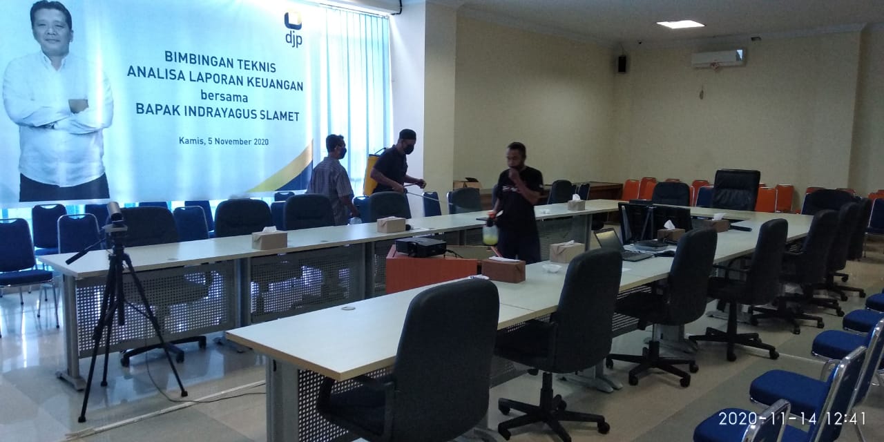 Adapun alasan penyemprotan disinfektan dilakukan pada hari Sabtu adalah untuk memastikan bahwa seluruh ruangan dapat dibersihkan secara menyeluruh, tanpa menganggu aktifitas pegawai bersangkutan. Fokus awal penyemprotan disinfektan adalah ruangan-ruangan yang sering dikunjungi pegawai dan wajib pajak, seperti loket pelayanan,ruang rapat, dan ruang toilet kantor.