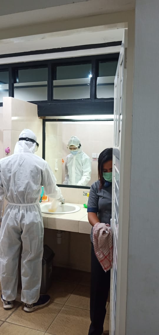 Area kantor seperti kamar mandi, tempat duduk wajib pajak, tempat cuci tangan dan area Tempat Pelayanan Terpadu (TPT) tak luput dari penyemprotan disinfektan. Penyemprotan disinfektan menjadi salah satu upaya dalam mencegah terjadinya penularan Covid-19 di lingkungan KPP Pratama Singaraja.