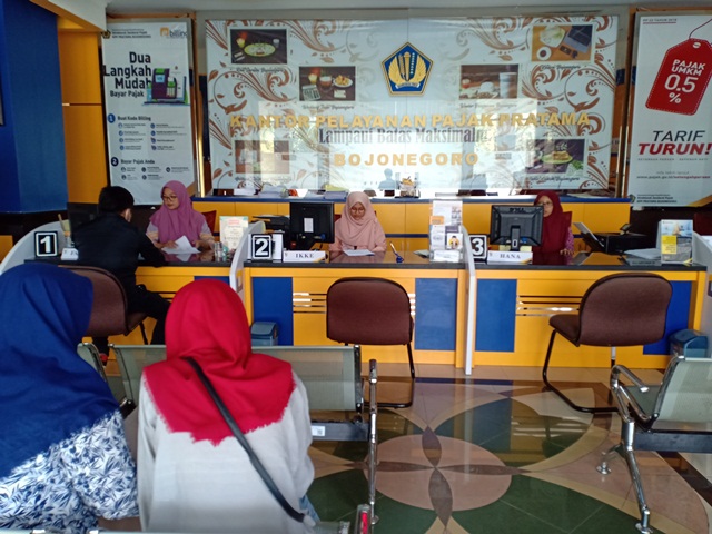 Tingkatkan kepatuhan pembayaran pajak dan kepatuhan pelaporan Surat Pemberitahuan (SPT), Kantor Pelayanan Pajak (KPP) Pratama Bojonegoro menyelenggarakan kelas pajak untuk usahawan yang ingin mendaftarkan diri sebagai wajib pajak di Tempat Pelayanan Terpadu (TPT) di KPP Pratama Bojonegoro (Selasa, 29/10). Kelas pajak membahas mengenai hak dan kewajiban para usahawan setelah mendaftar Nomor Pokok Wajib Pajak (NPWP).