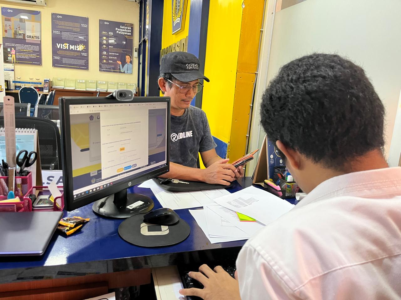 Setelah mendengar penjelasan Rahmat, Abi meminta Rahmat untuk memberikan asistensi tata cara menggunakan layanan e-PBK. “Saya mau belajar cara pakai e-PBK, Pak. Mohon bantuannya,” ucap Abi. Rahmat kemudian segera memandu wajib pajak untuk mengajukan pemindahbukuan melalui laman pajak.go.id menggunakan laptop pribadi wajib pajak.