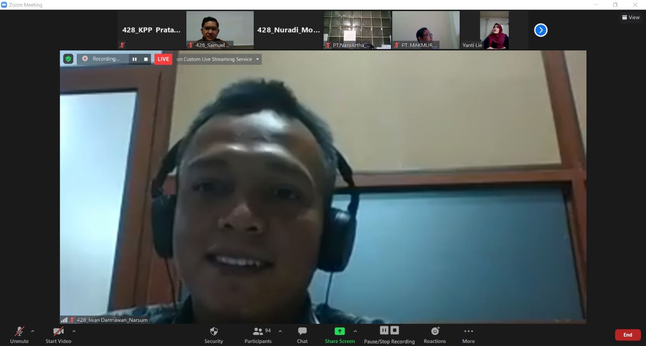 Kantor Pelayanan Pajak (KPP) Pratama Bandung Bojonagara menyelenggarakan Bimbingan Teknis (Bimtek) Aplikasi e-Faktur versi 3.0 secara daring melalui Zoom Meeting yang dipandu dari KPP Pratama Bandung Bojonagara (Selasa, 6/10). Bimtek ini bertujuan untuk membantu para Wajib Pajak (WP) yang merupakan Pengusaha Kena Pajak (PKP) Strategis di KPP Pratama Bandung Bojonagara dalam memahami dan mengimplementasikan aplikasi e-Faktur versi 3.0.