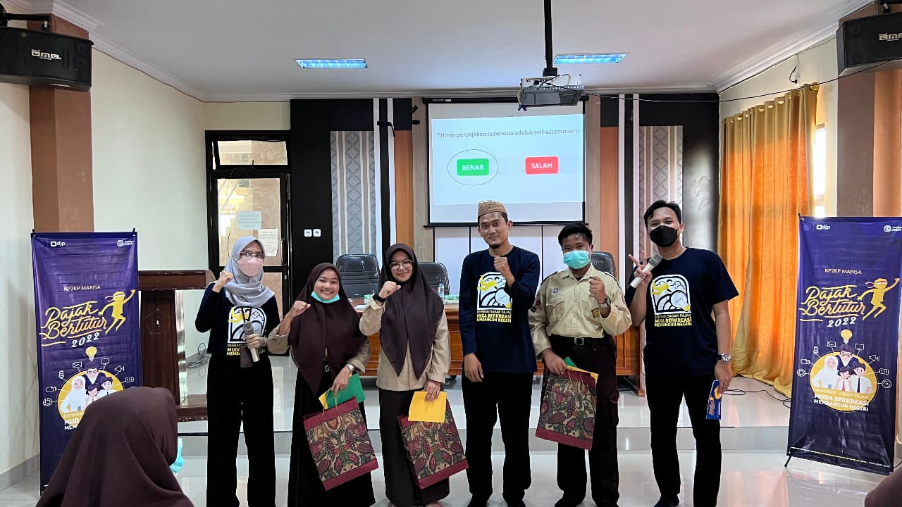 Kantor Pelayanan Penyuluhan dan Konsultasi Perpajakan (KP2KP) Marisa menyelenggarakan kegiatan Pajak Bertutur 2022 kepada tiga puluh perwakilan siswa di Aula Madrasah Aliyah Negeri (MAN) 1 Pohuwato (Kamis, 18/8). Kegiatan yang berlangsung serentak di seluruh Indonesia ini mengambil tema Generasi Sadar Pajak, Muda Berkreasi Membangun Negeri.