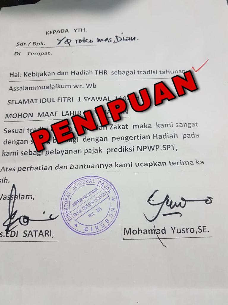 - Kanwil DJP Jawa Barat II meminta kepada masyarakat khususnya Wajib Pajak mewaspadai modus penipuan yang mengatasnamakan Kanwil DJP Jawa Barat II maupun KPP dengan modus permintaan THR.